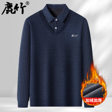 皮尔卡丹秋冬新款男士长袖T恤假两件中年时尚百搭加绒加厚打底衫