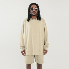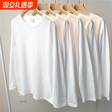 重磅基础款纯色长袖T恤男秋潮牌宽松休闲打底衫oversize内搭上衣