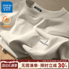 恒源祥纯棉卫衣男款2025秋冬圆领长袖t恤男士加绒加厚宽松打底衫