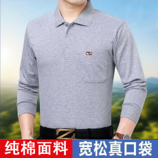 皮尔卡丹男士长袖T恤桑蚕丝POLO衫中年加厚保暖纯色打底衫上衣