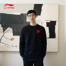 李宁正品中国色系列男子柔软舒适复古休闲圆领套头卫衣AWDU657