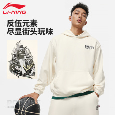 李宁卫衣2024秋季运动潮流系列男子宽松舒适套头连帽上衣AWDU617