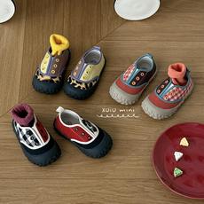 日系儿童帆布鞋男童女童卡通学步鞋小童宝宝弹力一脚蹬室内地板