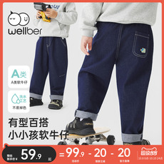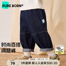 博睿恩男童春秋裤子钱布雷柔软牛仔裤男女宝宝儿童休闲百搭阔腿裤