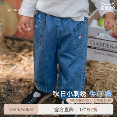 whitewheat宝宝2025春秋新款长裤男孩刺绣纯棉裤子女童时髦牛仔裤