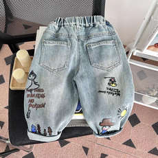 儿童软牛仔裤男做旧2025春秋季新款小童休闲裤宝宝卡通长裤女洋气
