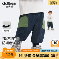 [防褪色]齐齐熊宝宝软牛仔裤春秋款男童裤子2025新款儿童休闲长裤