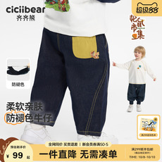 [防褪色软牛仔裤]齐齐熊宝宝裤子春秋款男童2025新款儿童休闲裤女