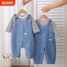 婧麒婴儿牛仔背带裤秋装2025新款男女宝宝裤子儿童休闲裤百搭春秋