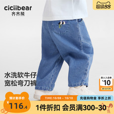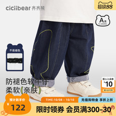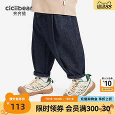 [弯刀裤防褪色]齐齐熊男童裤子春秋款宝宝牛仔裤儿童2025新款长裤