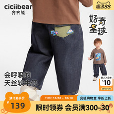 [莱赛尔软牛仔裤]齐齐熊宝宝秋季男童裤子春秋款2025年新款防褪色