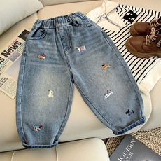 whitewheat宝宝2025春秋新款长裤男孩刺绣纯棉裤子女童时髦牛仔裤