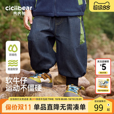 [弯刀裤]齐齐熊男童裤子春秋款宝宝软牛仔裤2025新款儿童休闲裤女