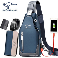 L&M胸包男士单肩斜挎包潮牌多功能水壶小挎包运动休闲通勤包防水