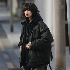 Nobodyknows美式纯色羊羔绒立领宽松保暖棉服男女工装夹克棉衣冬