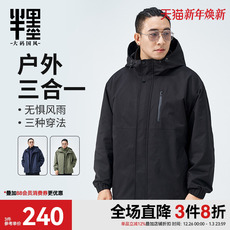 半墨大码男装冲锋衣式外套男士冬季新款防风户外三合一工装夹克男
