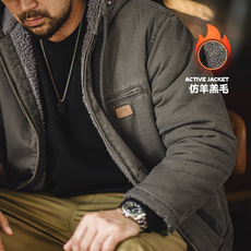 王簰“麂皮绒”!轻工装复古!外贸男装秋冬加绒加厚保暖夹克外套