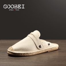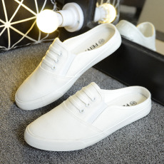 帆布小白鞋女大码布鞋夏季半拖鞋无后跟休闲鞋平底拖鞋男鞋潮