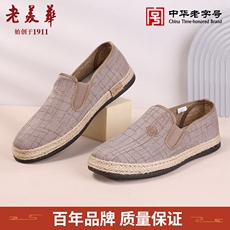 老美华夏季新款老北京布鞋男千层底休闲鞋一脚蹬男鞋渔夫底草编鞋