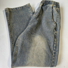 春秋款男式裤腰松紧宽松直筒复古蓝牛仔裤