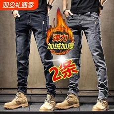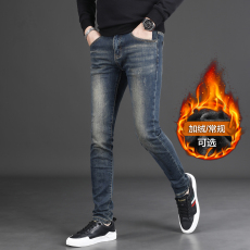 秋冬季加绒加厚男士牛仔裤男修身小脚裤男装弹力休闲韩版潮流长裤
