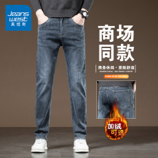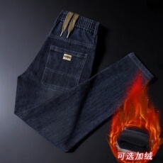 加绒加厚秋冬男士宽松牛仔裤长裤高弹力直筒修身休闲保暖冬季裤子