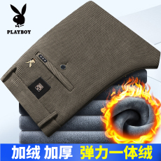 花花公子灯芯绒男长裤中老年高腰条绒裤直筒弹力休闲裤加绒加厚冬