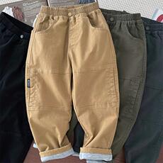 男童加绒休闲长裤~秋冬中大童宽松弹力保暖厚裤子纯色百搭一体绒