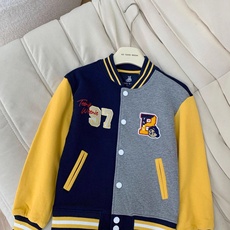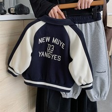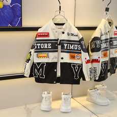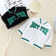 2025冬季新款童装儿童韩版撞色字母夹克男童夹棉棒球服外套