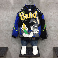 女童秋冬外套23新款男宝宝卡通刺绣夹克衫儿童加绒韩版洋派棒球服
