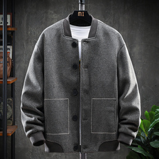 毛呢外套男春秋加厚加棉潮流韩版高级感百搭呢子夹克男棒球服秋装
