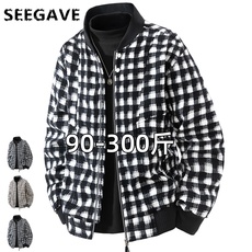 新款大码夹克男士千鸟格棒球服男韩版格子加肥加大胖子外套秋天