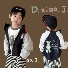 男童外套2024春秋新款儿童连帽夹克衫中小童帅气假两件棒球服韩版