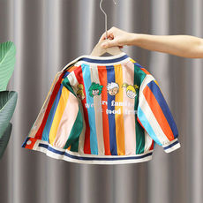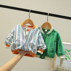 2024韩版男童棉质春秋小童休闲时髦条纹开衫外套宝宝棒球服夹克