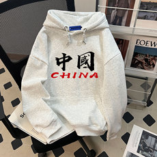 美式时尚潮牌连帽卫衣男款秋冬装宽松印花百搭印花加绒休闲外套潮