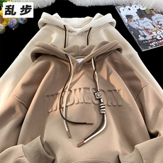 乱步重磅美式卫衣男款钢印字母新款潮牌连帽加绒冬装高街上衣外套