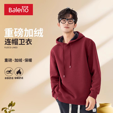 班尼路加绒加厚连帽男士卫衣男款秋季冬装保暖酒红色上衣外套LF