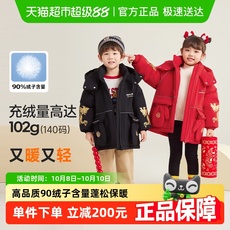 鸭鸭儿童羽绒服男款女款加厚冬装外套反季2025年新款印花中长款