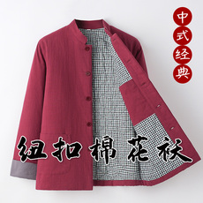 中国风成人中式对襟改良唐装式棉麻手工棉花棉衣棉袄男款冬装外套