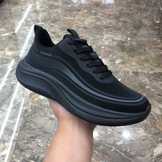 361男鞋运动鞋秋季新款网面轻便跑鞋皮面休闲鞋子黑色跑步鞋男款