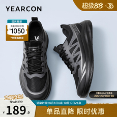 缓震国货透气网面运动鞋男款夏季防滑轻便黑色休闲鞋皮面防水男士