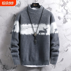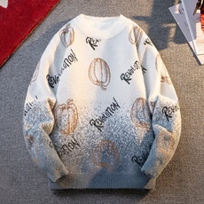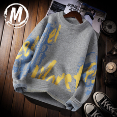 圆领印花毛衣男秋冬季学生宽松套头毛线衣服保暖青少年针织打底衫
