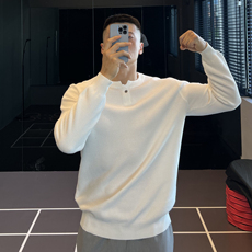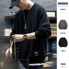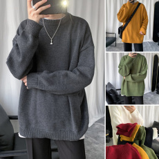 纯色毛衣男款秋冬季宽松圆领打底针织衫潮流男生套头慵懒情侣线衣