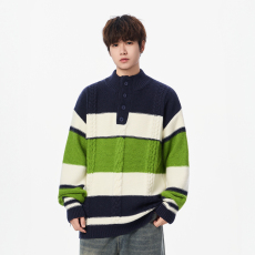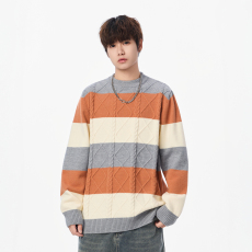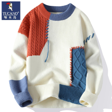 撞色慵懒风毛衣男秋冬季新款加厚保暖套头毛线衣青少年针织衫外套