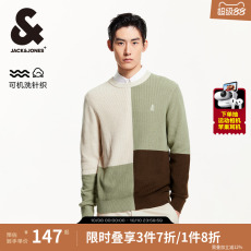 【可机洗】杰克琼斯男装秋冬新款撞色拼接针织衫含棉线衣刺绣毛衣