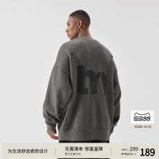 BODYDREAM BM破洞印花毛衣男秋季不规则破坏感毛线衫针织套头上衣