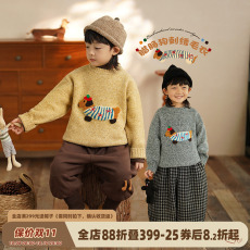 砚台家童装男童毛衣儿童保暖针织衫宝宝狗狗刺绣打底毛线衣秋冬款