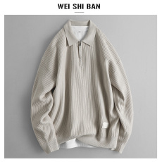 FORNINES慵懒风含羊毛圆领针织衫男潮牌秋冬纯色毛衣情侣休闲线衣