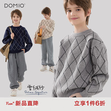 现货25年秋冬款小熊男童装圆领毛衣毛衫菱格针织衫中大童英伦线衫