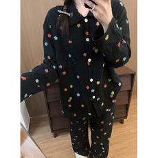 中年妈妈睡衣女春秋季长袖纯棉开衫家居服中老年人女士加大码套装